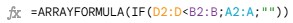 =ArrayFormula(IF(D2:D<B2:B;A2:A; » »))